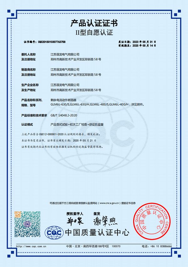 GLM6L-400HSJ自愿认证证书