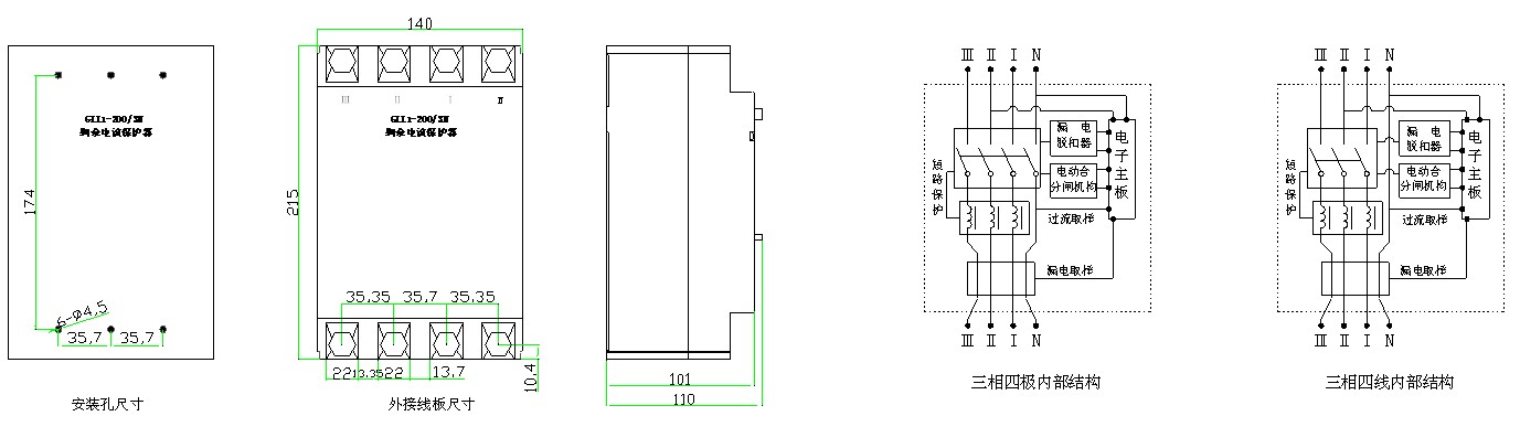 6.3 ²úÆ·Éϲà¢ó¡¢¢ò¡¢¢ñ¡¢NΪµçÔ´½øÏß²à,·Ö±ð¶ÔÓ¦ÏàÏßA¡¢ B¡¢ CºÍµçÔ´ÖÐÐÔÏߣ¨ÁãÏߣ©N£¬Ï²à¢ó¡¢¢ò¡¢¢ñ¡¢NΪ¸ºÔزà½ÓÏß¡£